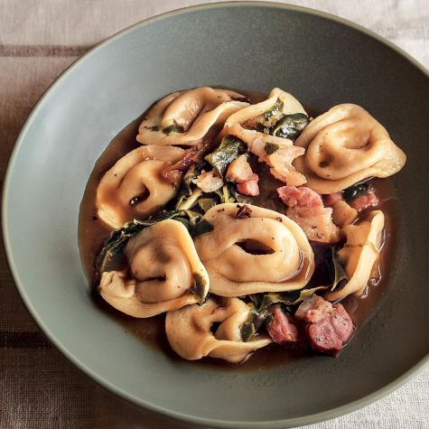 Divide the tortellini among warmed wide, shallow bowls, then ladle in the collards, ham hock meat and brodo from the pan. Serve immediately, passing additional pepper vinegar and Parmigiano-Reggiano at the table for diners to add to taste. Serves 4.