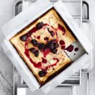 A touch of dried lavender adds a floral note to this cheesecake, and a swirl of blackberry jam lends a colorful sweet touch. Just right for summer picnics and barbecues, the dessert couldn’t be easier to make, and you don’t need a special pan—it bakes up beautifully in a square cake pan. After the cheesecake sets up, cut into bars and enjoy.