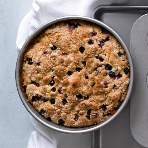 Crumb cakes are most often served for breakfast, but this version, which has plenty of sweet blueberries and a rich, buttery topping, is decadent enough to be served for dessert if you like. Feel free to substitute other berries, such as raspberries or blackberries, in place of the blueberries.
