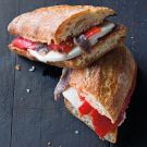 Divide the cheese slices evenly among the bottom halves of the baguettes, followed by the roasted bell pepper strips and anchovies. Cover with the top halves of the baguette and press gently to secure the filling. Cut each sandwich in half again, if desired, and serve immediately. Serves 4.