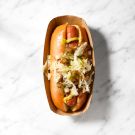 Although Massachusetts-style hot dogs haven’t always received the same fame as a Chicago or New York dog, this regional variation has its own iconic style thanks to its bun. Not only are they exceptionally soft and designed to stand upright, but they’re also steamed instead of toasted—a hallmark of the beloved frank served at Fenway Park. If you’d like to grill your franks instead of (or in addition to) boiling them, preheat a cast-iron skillet or griddle over medium-high heat. Add the hot dogs and cook, turning occasionally, until browned and blistered on all sides, 6 to 8 minutes. Grilling will help the hot dog retain moisture while also creating a nice grilled texture.