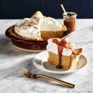 Rich with butterscotch flavor and infused with a shot of bourbon, this pie is topped with a billowy meringue, then served with a drizzle of buttery caramel sauce. It’s guaranteed to steal the show at autumn gatherings. The recipe calls for 16 egg yolks—you’ll use some of the whites for the meringue topping, but don’t toss the rest! They’ll keep in the refrigerator for up to two days and can be frozen for several months. Use them for making everything from more meringues and frostings to frothy cocktails.