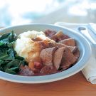 Slice the brisket across the grain and serve with some of the sauce and vegetables spooned on top. Serves 4 (makes about 10 cups sliced or shredded brisket total).