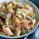 Tender braised chicken tossed with a tarragon-cream sauce and ribbons of pappardelle makes for a delicious and decadent cold-weather meal. Look for an organic chicken for superior flavor. The addition of lemon zest and fresh herbs imparts a welcome burst of flavor to the dish.