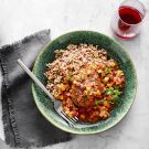 From award-winning chef JJ Johnson’s new book, The Simple Art of Rice, this hearty dish has a lovely balance of tartness from Granny Smith apples, sweetness from a brandy glaze, nuttiness from a colorful rice mix and freshness from chopped herbs. He loves to make this comforting recipe for his family on a rainy or snowy Sunday evening. The tricolored rice blend is aesthetically pleasing and fun—the chef uses Ralston Family Farms Nature’s Blend—but you can substitute brown or wild rice. In either case, you’ll end up with a delicious stewed tomato gravy that infuses the rice and chicken with flavor.