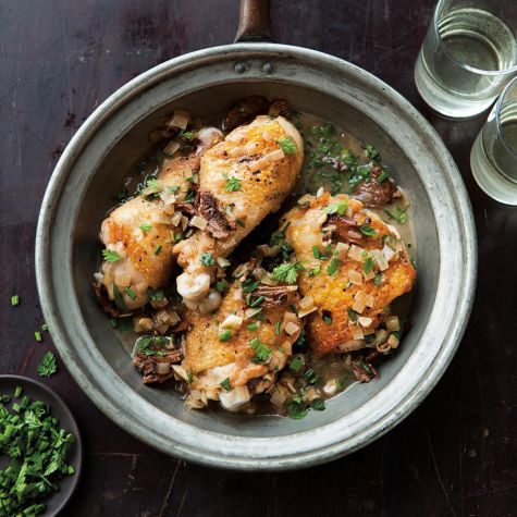 Shallots break ground in spring. The purple-hued bulbs have a flavor somewhere between onion and garlic, and they braise to a delectable sweetness. White wine and tarragon enliven the pot, while dried mushrooms provide an earthy undertone.