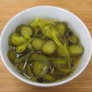 • 2 1/2 lb. Kirby cucumbers, sliced 1/4 inch thick on a mandoline fitted with a ruffle blade