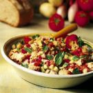 This rustic Tuscan salad, called panzanella, is best when made with a chewy, coarsely textured white bread. The bread must be at least 3 to 4 days old to provide the correct texture when mixed with tomatoes and vinaigrette. Round, yellow lemon cucumbers deliver a sweet, mild flavor to the salad.