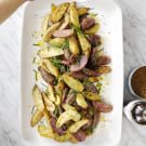 Gaby Dalkin, cookbook author and found of What’s Gaby Cooking, created her This is Everything Seasoning—inspired by the bagel of the same name—to add savory crunch to, well, just about everything. Here she tosses the blend with fingerling potatoes, which are ideal for roasting because they hold their shape well and, when halved lengthwise, have lots of surface area for browning. For a pretty presentation, use multicolored fingerlings if you can find them. A shower of fresh herbs finishes the dish with a springtime flourish.