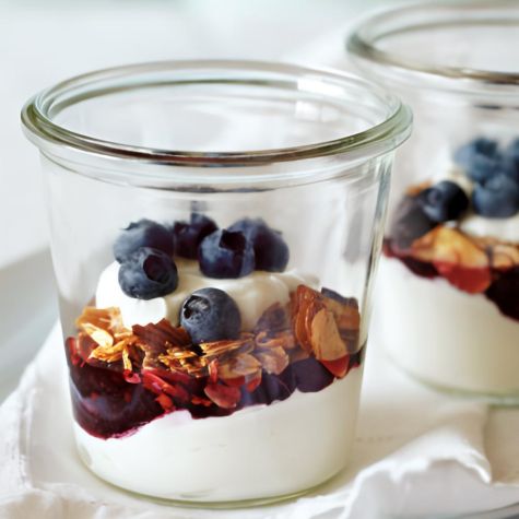• Whole Wheat Pancakes with Strawberry-Rhubarb Compote