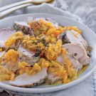 Cuts of pork of every kind are versatile, flavorful, simple to cook and popular with a wide range of meat eaters. But pork is easy to overcook, and nobody likes dried-out meat. This loin, made tender and juicy with an overnight brine bath and served with a sweet and savory mostarda, will never let the cook down.