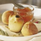 A French yeast bread rich with butter and eggs, brioches may have originated in Normandy, a region famous for its fine butter since the Middle Ages. In the 17th century, brioches arrived in Paris, where they were initially made using brewer's yeast, rather than baker's yeast. Here, the breads are prepared in a mini-muffin baking mold, rather than in traditional brioche molds.