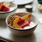 Liven up your breakfast routine with this bowl of homemade granola topped with pears poached in a flavorful syrup, a favorite dish at New York City’s Bluestone Lane. The pears can be poached up to 3 days in advance and will continue to become more fragrant as they sit. This recipe makes a big batch of granola, which can be stored in an airtight container for up to 2 weeks.