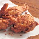 Drain the chicken pieces on paper towels for just a minute or two, then transfer to a warmed platter and serve immediately. Serves 4.