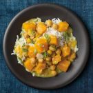 In a slow cooker, combine the chickpeas, squash, onion, garlic, ginger, coriander, turmeric, pepper flakes, coconut milk, water, cilantro and 1 tsp. salt. Stir to mix well. Cover and cook on low according to the manufacturer’s instructions until the squash is very tender, about 4 hours.