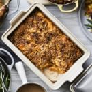 Ina Garten loves butternut squash, so she uses it in many of her recipes. In the fall, this is an easy dish to dress up a simple roast chicken or pork loin. She cooks the squash with garlic and a little nutmeg, then puts it in a gratin dish with a topping of crunchy bread crumbs and Gruyère cheese. This is serious comfort food on a cold winter night.