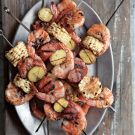 Slide the shrimp, sausages and vegetables off the skewers onto a platter and serve immediately. Serves 6 to 8.