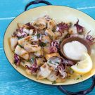 - 2 lb. small calamari, tentacles and bodies, thawed if frozen