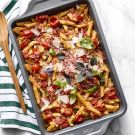 “My sister, Annie, is perhaps my most loyal recipe follower—she and her husband, Nick, cook my recipes almost every night of the week,” says Caroline Chambers, a culinary expert and best-selling cookbook author. When visiting them in North Carolina, she made this baked tomato pasta and now it’s on their weekly rotation. “They can pop it in the oven, head out back for a swim with their sons, and come back inside to perfectly cooked tomato butter pasta thirty minutes later,” she explains. Caroline included the recipe in her cookbook What to Cook When You Don’t Feel Like Cooking.