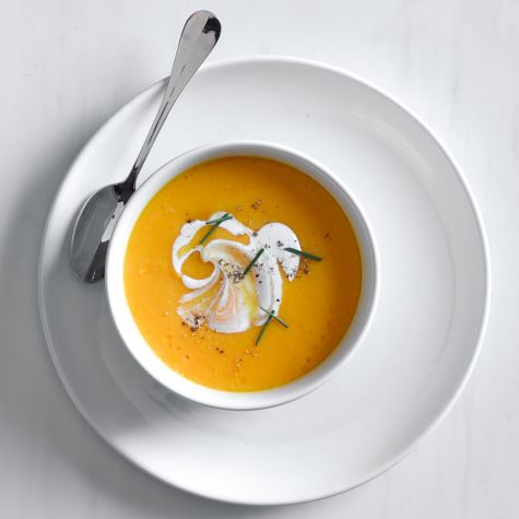 Divide the soup between 2 bowls, garnish with the crème fraîche and chives, and serve immediately. Serves 2.