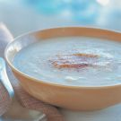 Using a food processor or blender, process the soup to a smooth puree. Return the soup to the pan. Place over medium heat, stir in the cream and reheat to serving temperature. Season with salt and pepper. Ladle the soup into warmed bowls, sprinkle with the paprika and serve immediately. Serves 4.