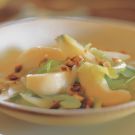 Using a slotted spoon, remove the celery from the vinaigrette and divide among chilled salad plates. Arrange the pear slices on top and drizzle with the vinaigrette. Sprinkle with the chopped hazelnuts and serve immediately. Serves 6 to 8.