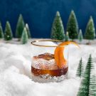 James Beard award–winning bartender Charles Joly is also co-founder of Crafthouse Cocktails, which makes the smoking box or smoking cloche you will need to give this winter drink its smoky flavor. Be sure to make a large ice cube or ice sphere for the drink at least several hours before you’re planning to serve it.
