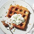 A mash-up of two Test Kitchen favorites—tater tots and waffles—this is sure to be in regular rotation when you want a comforting brunch. These crispy tot waffles are loaded with three kinds of cheese: sharp Cheddar, Gruyere and Parmesan. The Test Kitchen chefs love adding a dollop of crème fraîche and chives, but you can really go to town with sliced avocado, poached eggs and chili crisp on top. So have fun!