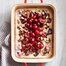 This cake is super low maintenance and that’s why our Test Kitchen chefs love it—they’re sure you will, too. An egg-free batter flavored with almond and vanilla extracts is paired with ripe cherries to create a light, fuss-free dessert that’s a guaranteed crowd-pleaser. No electric mixer is needed; simply whisk the ingredients together and bake. It’s called a spoon cake for its scoopability, so no proper cutting is required. Just spoon out a warm generous portion into a bowl, top with vanilla ice cream and savor springtime.