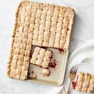 This pie is guaranteed to impress, both with its good looks and its taste. The woven lattice crust lets you show off your baking skills and is really quite easy to prepare. There will be plenty of pie for everyone since it’s made in a baking sheet! If fresh cherries aren’t in season, thawed frozen fruit is a fine substitute.