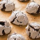 Drop the meringue by heaping tablespoons, spaced slightly apart, onto the prepared baking sheets. Bake for 9 minutes. Rotate the pans and bake until the cookies are fluffy, full of cracks and spring back when touched, about 9 minutes more. Carefully pick up the parchment sheets and transfer the cookies, still on the parchment, to wire racks to cool. Makes about 2 dozen meringues.