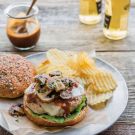 Chicken Burgers with Bourbon Barbecue Sauce and Mushrooms