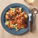 The deep, rich color and slightly piquant flavor of paprika lays the groundwork for this classic Hungarian stew, which is traditionally served over hot egg noodles. If your slow cooker doesn’t have a flameproof insert, brown the chicken and sauté the onions and bell peppers in a Dutch oven or large sauté pan, then transfer the contents of the deglazed pan and the chicken to a slow cooker to finish cooking.