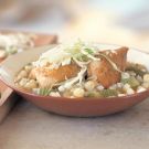 The spicy Mexican soup known as posole is traditionally made with hominy as well as chicken or pork, all simmered in a flavorful broth. In our easy version, a sprinkling of sliced green cabbage adds a pleasing crunch.