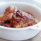 This dish features the sunny flavors of Provence. The chicken simmers in its own juices along with tangy tomatoes and a crisp white wine that together impart a delightfully tart quality.