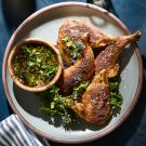 Transfer the chicken to a carving board, cover loosely with aluminum foil and let rest for 5 to 10 minutes before carving. Serves 4.