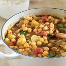This vegetarian curry is awesome after it sits for a day and the chickpeas have time to absorb the flavor of the spices. You might want to make it a day ahead of time for just that reason. Spoon this vegetarian curry over hot, steamed basmati rice so you can fully appreciate the flavors in the sauce. If you like a bit of heat, add some minced serrano chili. Serve with spoonfuls of raita for a cooling contrast.