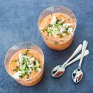 When the weather heats up, a no-cook soup is a refreshing way to start a dinner party. A dollop of cucumber-crab salad on top of each serving puts a delicious new twist on the dish, but the soup is equally delicious without it.