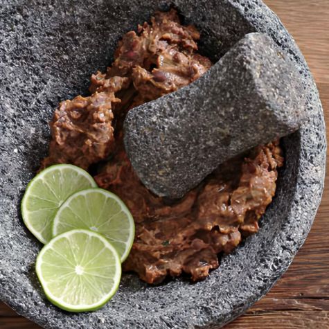 In a large molcajete, combine the chipotle chilies, lime juice, garlic powder, onion powder, cumin and cilantro. Using a pestle, grind the ingredients together to form a paste. Add three-fourths of the black beans and grind until well mashed. Stir in the remaining beans and season with salt. Serve with tortilla or corn chips for dipping. Makes about 2 1/2 cups.
