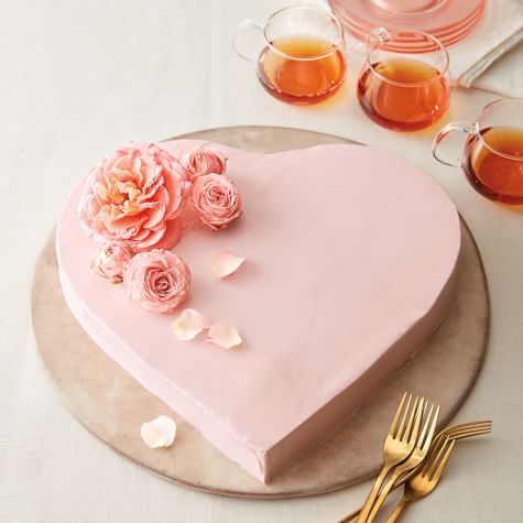 To assemble, cut the round cake in half crosswise. Orient the square cake as a diamond. Frost the cut sides of the half rounds with the frosting and place them against the top sides of the diamond to form a heart shape, pressing gently to adhere. Spread the remaining buttercream or frosting over the entire surface of the cake. Decorate as desired with edible flowers and serve. Serves 12 to 16.