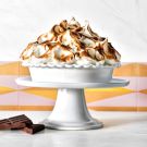 Pipe or spread the meringue over the ganache so that it completely covers the pie. Use the back of a spoon to create swooshes and texture in the meringue. Using a kitchen torch according to the manufacturer’s instructions, toast the meringue until lightly browned. Cut into slices and serve. Serves 8 to 10.