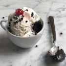 Transfer the mixture to a microwave-safe mug and microwave on high for 30 seconds. Remove from the oven and let cool for 2 minutes. If desired, top with a scoop of ice cream, whipped cream and chocolate shavings. Serve immediately. Serves 1.