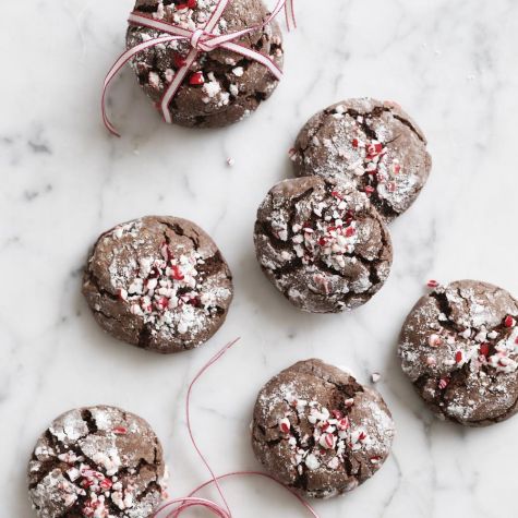 Bake until the cookies have puffed up and the surface cracks, showing the chocolate beneath, 8 to 10 minutes. Let cool slightly on the pan and then gently press some of the crushed peppermint candies on top of each cookie. Transfer the cookies to wire racks and let cool completely. Store in layers, separated by waxed paper, in an airtight container at room temperature for up to 3 days. Makes about 48 cookies.