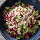 Whenever you make hard-cooked eggs, cook a few extra to have on hand for adding protein and heft to salads such as this one. If the flavor of raw broccoli is too strong for you, blanch the florets for a few minutes, then put them in ice water to halt the cooking. There’s plenty of protein packed into this hearty salad. For a lower-fat version, omit the cheese and remove the yolks from the hard-cooked eggs.