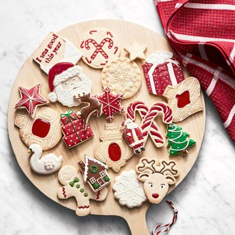 Decorate the cooled cookies as desired with the icing, using a pastry bag fitted with a plain tip or a small plastic bag with the corner snipped off. Decorate with sanding sugar if desired. Store the cookies in an airtight container. Makes about 4 dozen cookies, depending on cutter size.