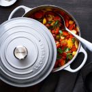 This recipe offers an update on a classic preparation for carrots. The carrots are first cooked in a pan with butter and water, then cloaked with a sweet-sour glaze of brown sugar and balsamic vinegar, a product that Chuck Williams introduced to cooks in the United States in 1977. For a surprising new twist on this humble recipe, look for multicolored carrots at the farmers’ market and use a few of each hue. Find this and many of Chuck Williams' other favorite recipes in our limited edition version of Cooking at Home, which celebrates his 100th birthday.