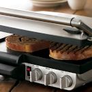 Set a Breville gourmet grill to the sandwich setting and preheat according to the manufacturer's instructions. Generously brush the griddle with butter. Place 2 bread slices on the griddle and lock the top plate so that it just rests on top of the bread. Cook until the bread is golden and crisp underneath, 3 to 4 minutes. Flip the bread, lock the top plate again and cook until the bread is golden and crisp underneath, 3 to 4 minutes more. Transfer the French toast to a warmed platter. Repeat to cook the remaining bread.