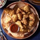 In a Dutch oven over medium-high heat, pour in oil to a depth of 2 to 3 inches (5 to 7.5 cm) and heat to 350°F (180°C) on a deep-frying thermometer. Alternatively, in a deep fryer, heat oil to 350°F (180°C) according to the manufacturer’s instructions.