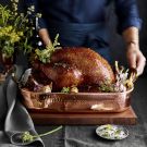 Transfer the turkey to a carving board, cover loosely with foil and let rest 20 to 30 minutes before carving. Serves 12 to 14.