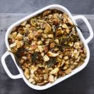 Transfer the stuffing to the prepared baking dish. Cover with a lid or a buttered sheet of aluminum foil and bake for 20 minutes. Remove the lid or foil and continue baking until the top is golden brown and crisp, 25 to 35 minutes more. Let rest for 10 minutes before serving.